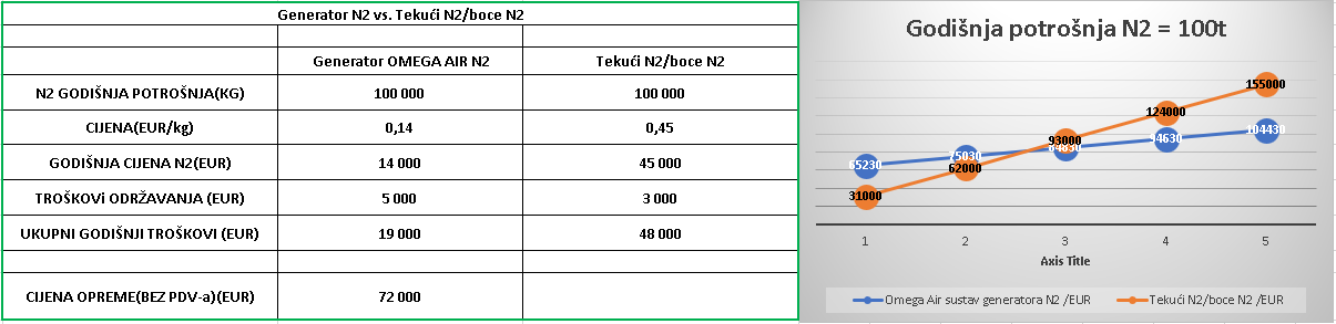 - niža cijena el.energije, niža cijena dušika iz generatora
